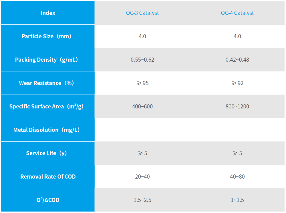 The catalytic ozonation is a process that the ozone is converted to hydroxyl radical (·OH, oxidation potential 2.80V, ranking only second to fluorine) with stronger oxidizability at ambient temperature and pressure to further oxidize and decompose organic pollutants in water, or break macromolecular organic pollutants into small molecules by oxidation to improve the biodegradability of the wastewater. Compared with the similar products in the market, which are featured with low efficiency, easy dissolution and instability, ozone-catalyzed oxidation catalyst developed by OriginWater, with independent intellectual property rights, is featured with strong adaptability, high removal rate, short retention time, low operating cost , etc. Thus, it is in leading level in the industry.