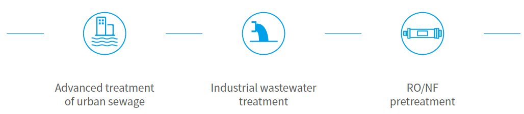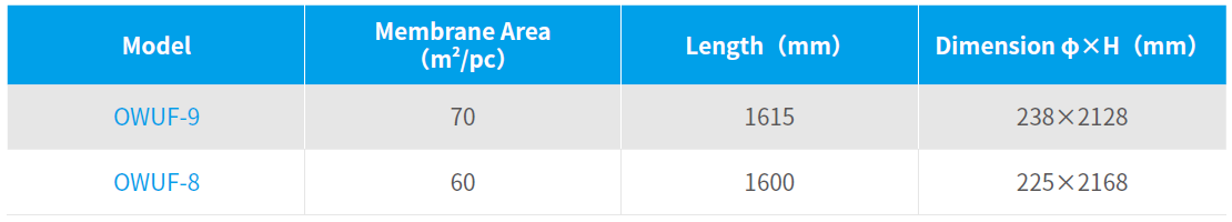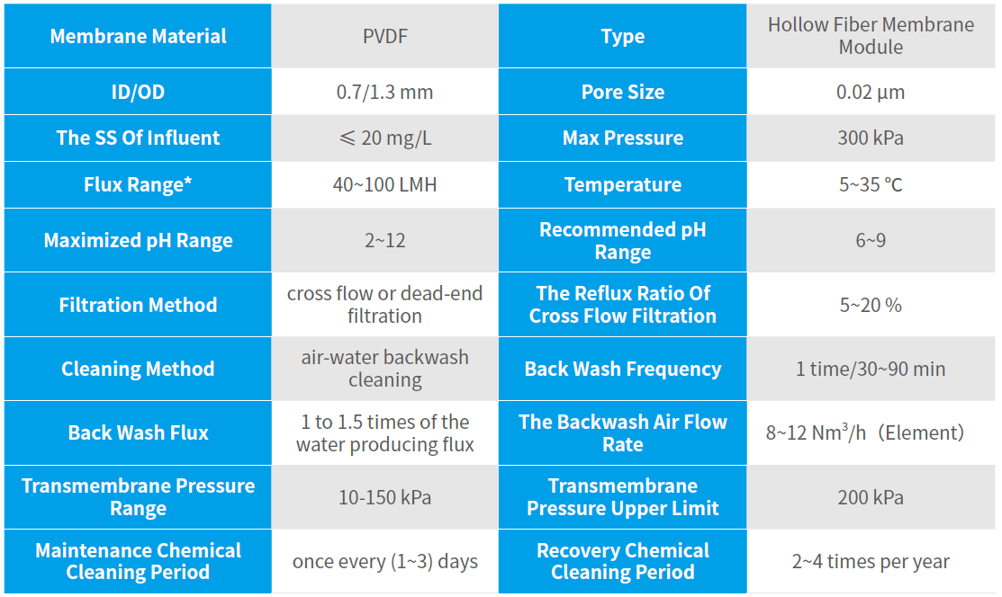 Excellent effluent quality: Narrow membrane pore size distribution, high filtration precision, effluent turbidity less than 0.5NTU;