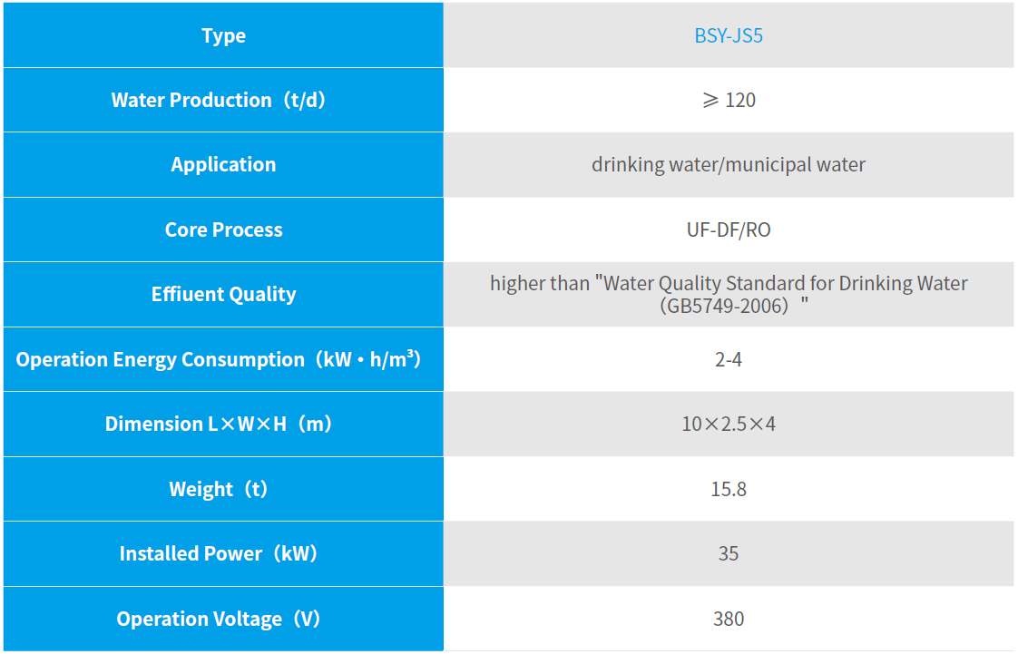 The Emergency Water Purifying Vehicle is a mobile mergency water purifying equipment in case of typhoon, earthquake, flood, debris flow, other natural disasters and sudden water pollution accidents. It is an organic combination device of drinking water preparation technology and vehicle based on UFDF/RO double membrane and is developed by OriginWater. The vehicle, featured with strong applicability of raw water, quick response, reliable performance and supplying water relying on the motivation and so on, meets all kinds of the emergency water supply needs. The National Capacity for Emergency Rescue for Water Supply project of the Ministry of Housing and Urban-Rural Development passes the acceptance inspection.