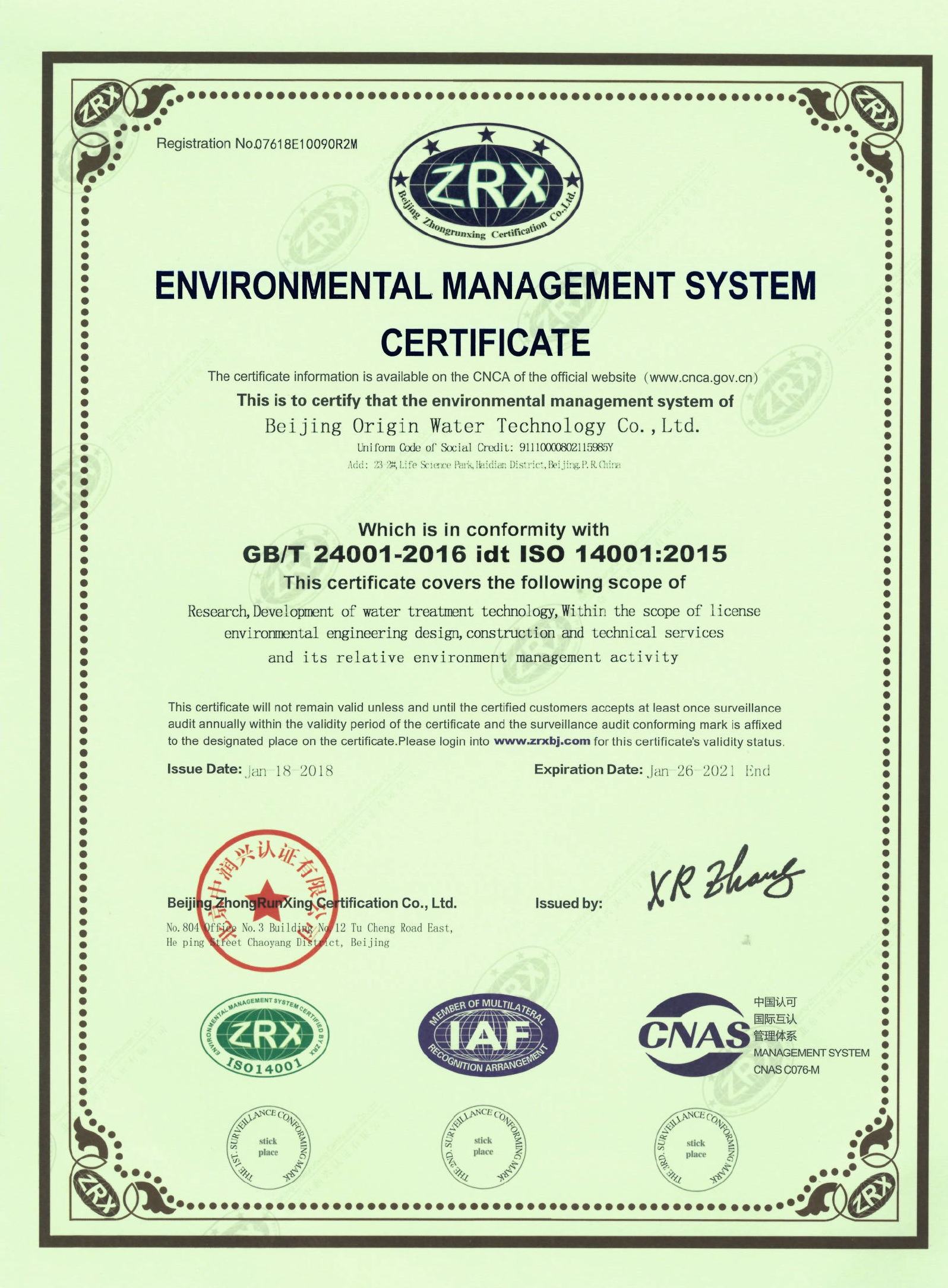 Beijing OriginWater Technology Co., Ltd. (BOW) is a high-tech enterprise founded by oversea...